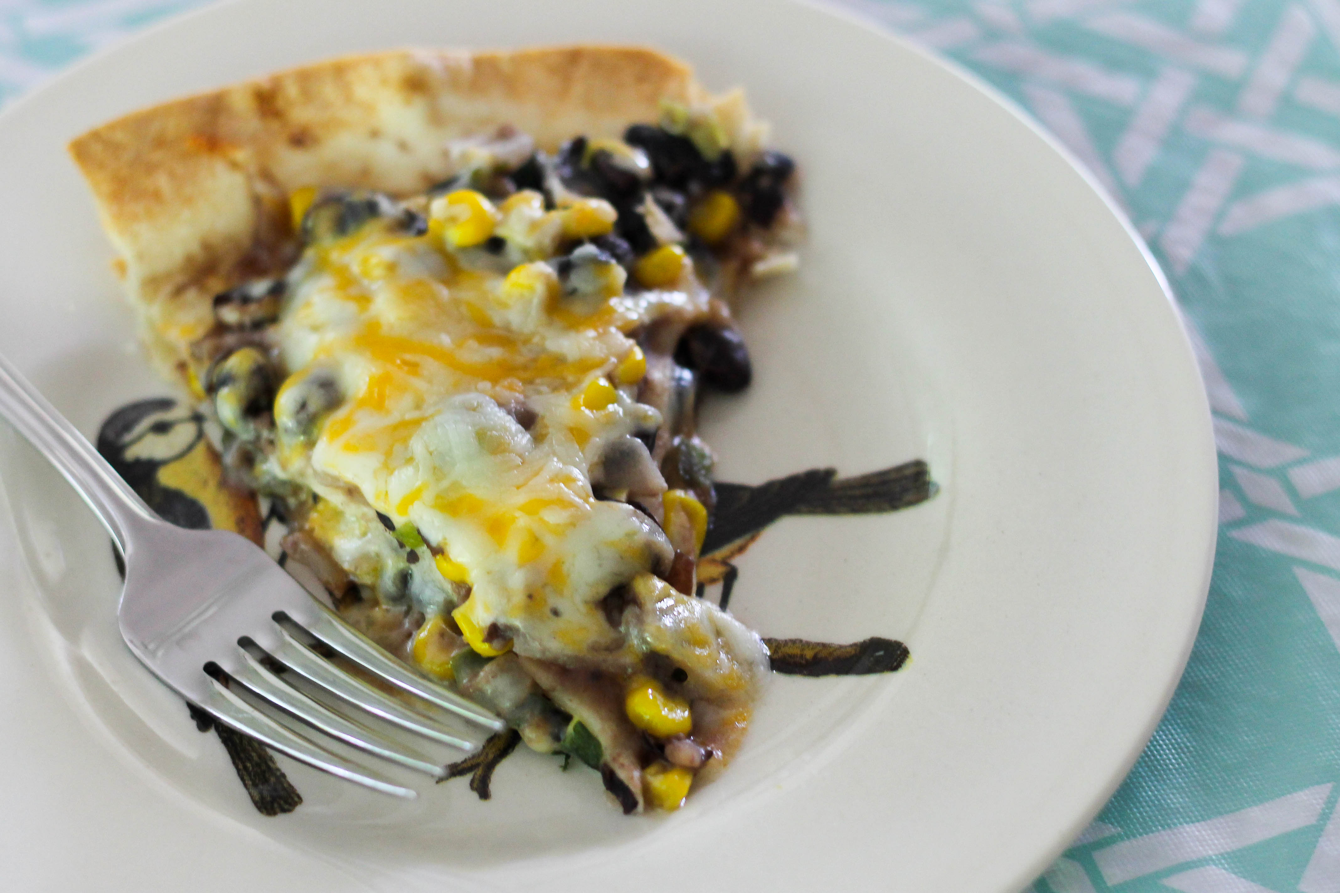This really is one of the best meals, for a couple reasons. The first is that it’s delicious! Even though it’s vegetarian, it’s tasty and filling. You could certainly add some cooked chicken if you like, but it really doesn’t need it. The second reason is that it’s easy! Have the filling ready in advance, so that it will only take a couple of minutes to assemble and twenty minutes to bake. Serve the pie with a little sour cream, and you have a healthy and delicious dinner!