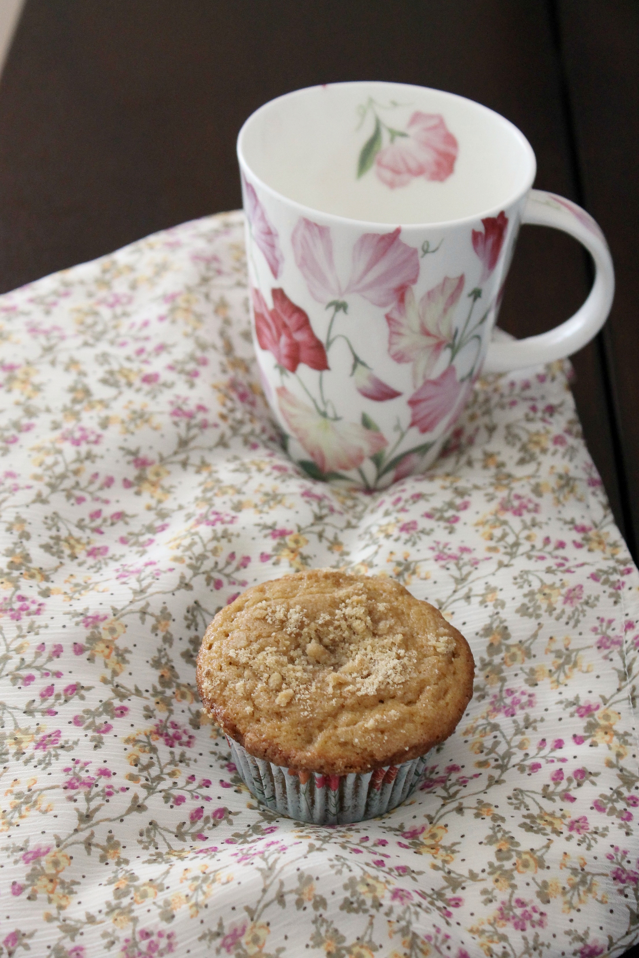 These muffins are certainly not beauty queens, but after one bite you will understand why we are posting about them. They are personally my (Celine’s) favorite muffin ever, which is saying something since we make tons of muffins (probably at 2-3 flavors a month!). We have occasionally brought them in to school for a homeroom breakfast treat, and they are always very happily received and eaten! These are not anywhere near healthy, because of the large quantities of butter and sugar, but that’s what makes them good! They are perfectly spiced with cinnamon and nutmeg and topped with a yummy streusel. The edges get crunchy, and the cake is tender and delicate. There is, in my opinion, no better muffin than this. Plus, they are perfect for fall!