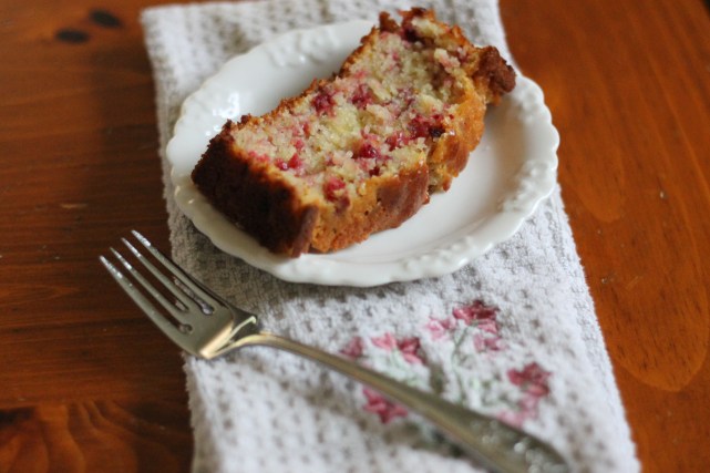 Hurricane Sandy is finally here, and earned us a four-day weekend! As long as our power stays on, we’re not complaining (although we have it really lucky; some folks who are in the path of the storm more in NJ and NY are losing more than their electricity, which is so sad). What better time is it to bake than during a huge storm? This cranberry bread is the perfect thing to make. It has a bright and sunny orange flavor, which might be the only sun able to be seen for the next few days! It’s got the perfect balance between tart and sweet, and it has great flavor. No one in our family had any complaints, and quite a large amount is gone already. Delicious!