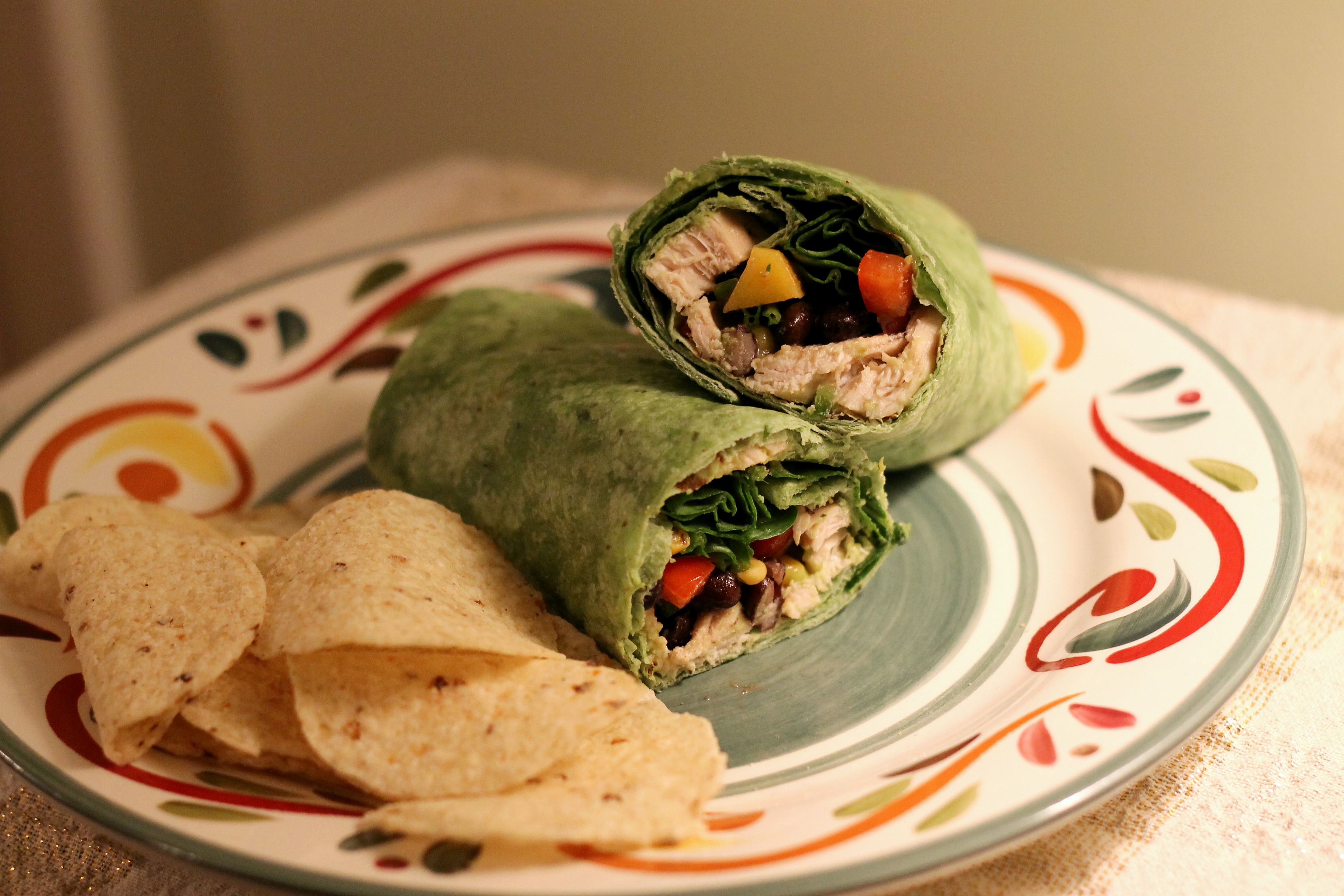 Roasted Chicken Wraps with Black Bean Salsa and Guacamole