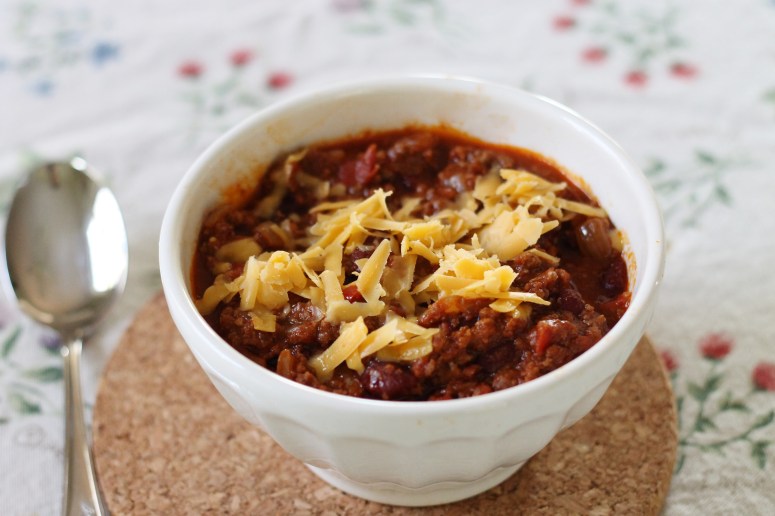 Everyone needs a good, basic chili recipe before winter starts. While this chili does have to simmer for several hours, it’s still pretty easy because there is not too much hands-on time. Generally, we’re not huge fans of chili with kidney beans, but this chili has plenty of thick sauce and meat to even out the beans. Now, is this chili the best in the entire world? Probably not, but it is hearty and delicious and perfect for a winter day (especially served with some cornbread on the side!). Ideally, make this chili the day before you plan to eat it, because the flavors really improve after a day in the fridge. Enjoy!
