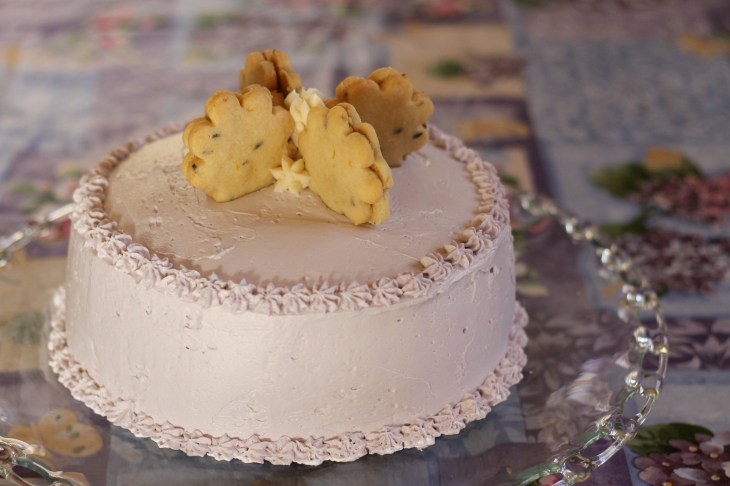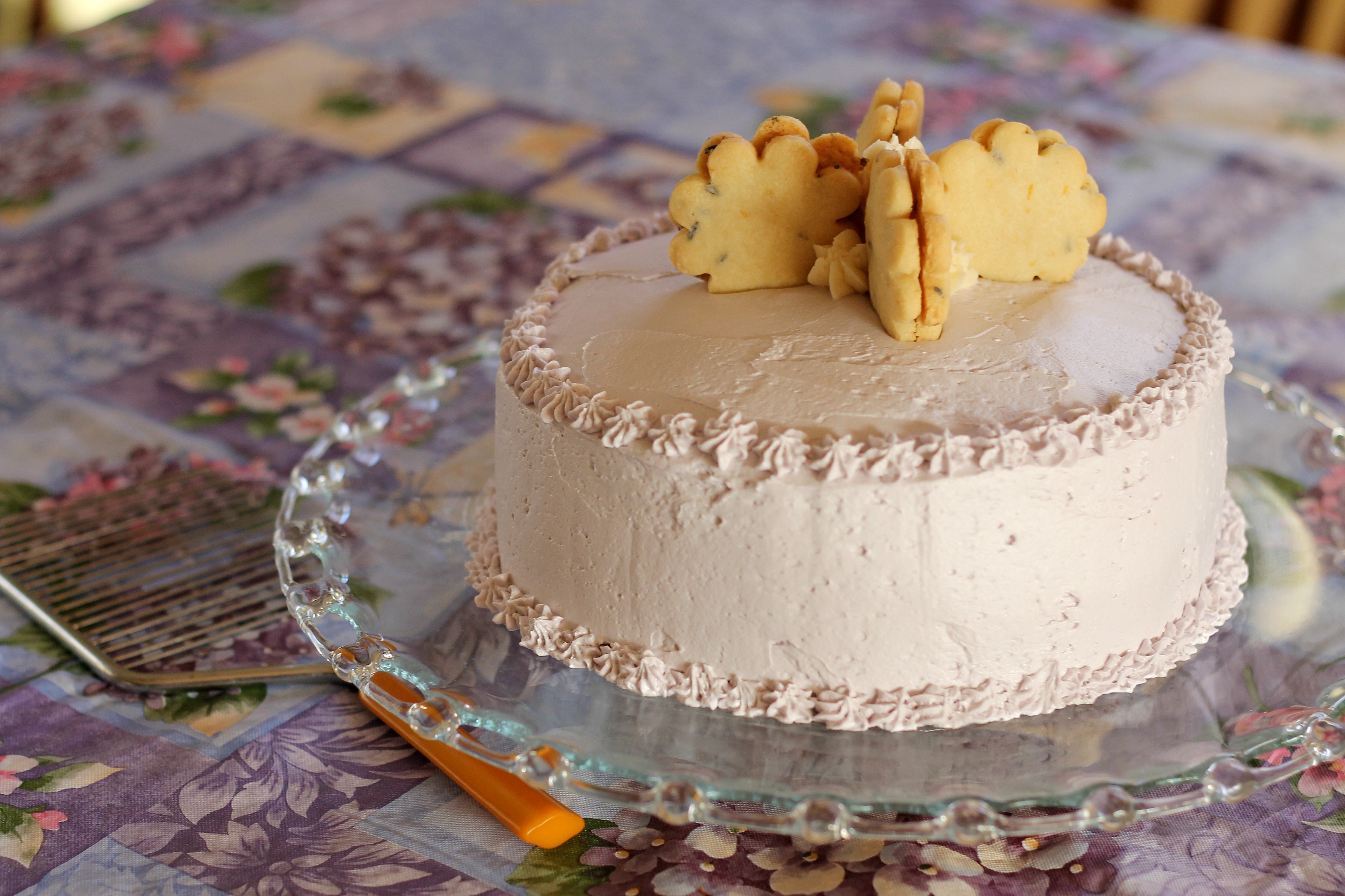 As a decoration,we made lavender lemon shortbread cookies. While they looked pretty, no one in our family loved them (with the exception of our 6-year-old brother, and he’s usually picky!). If we were to make this cake again, we would probably omit making the cookies.