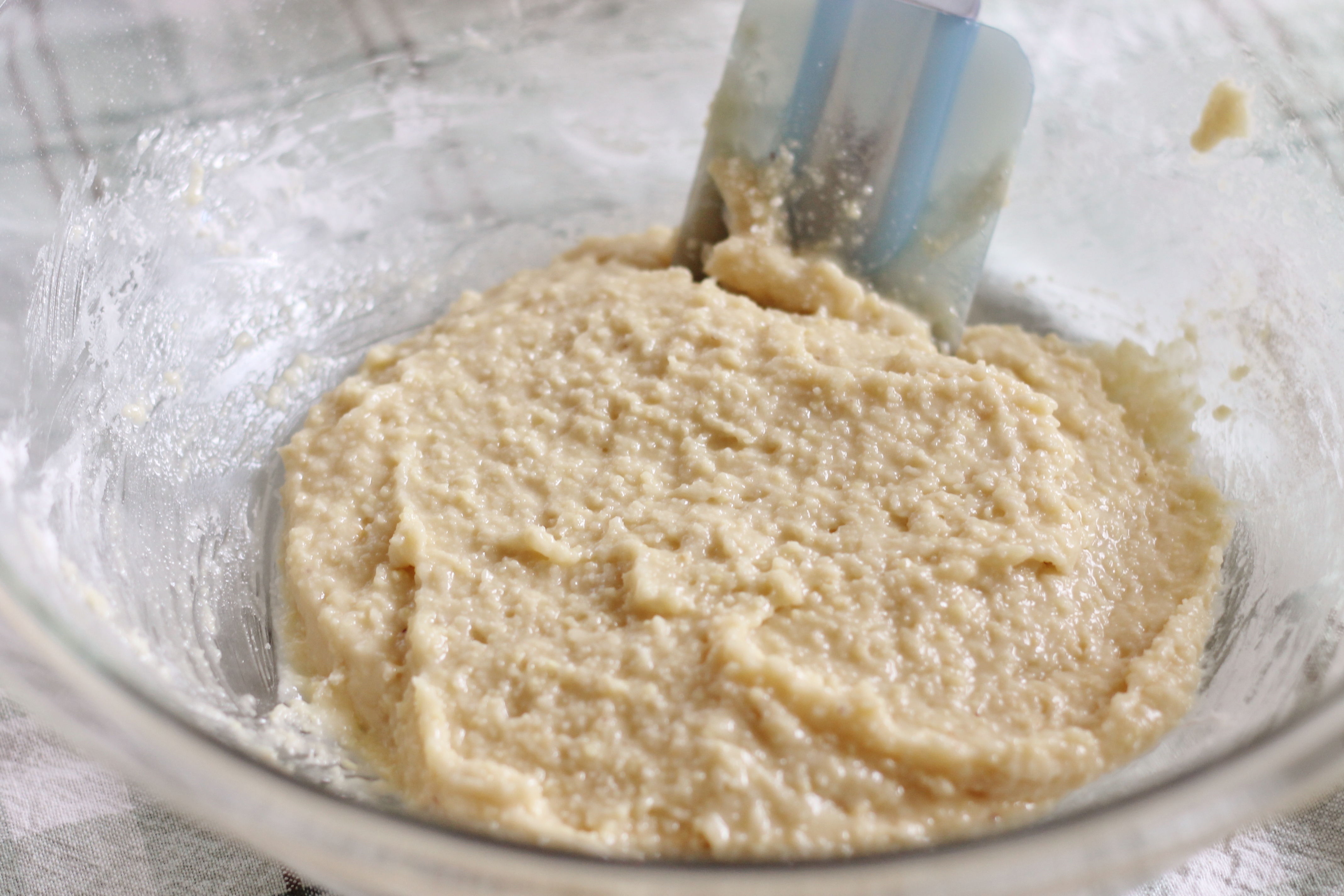 Add one third of the meringue mixture to the bowl with the almond mixture. Fold in gently until the mixture is smooth. A bit at a time, gently fold in the remaining meringue until the batter is smooth and runs in thick ribbons off of the spatula. You may not need all of the meringue- we used most of it, but there was a little meringue left.