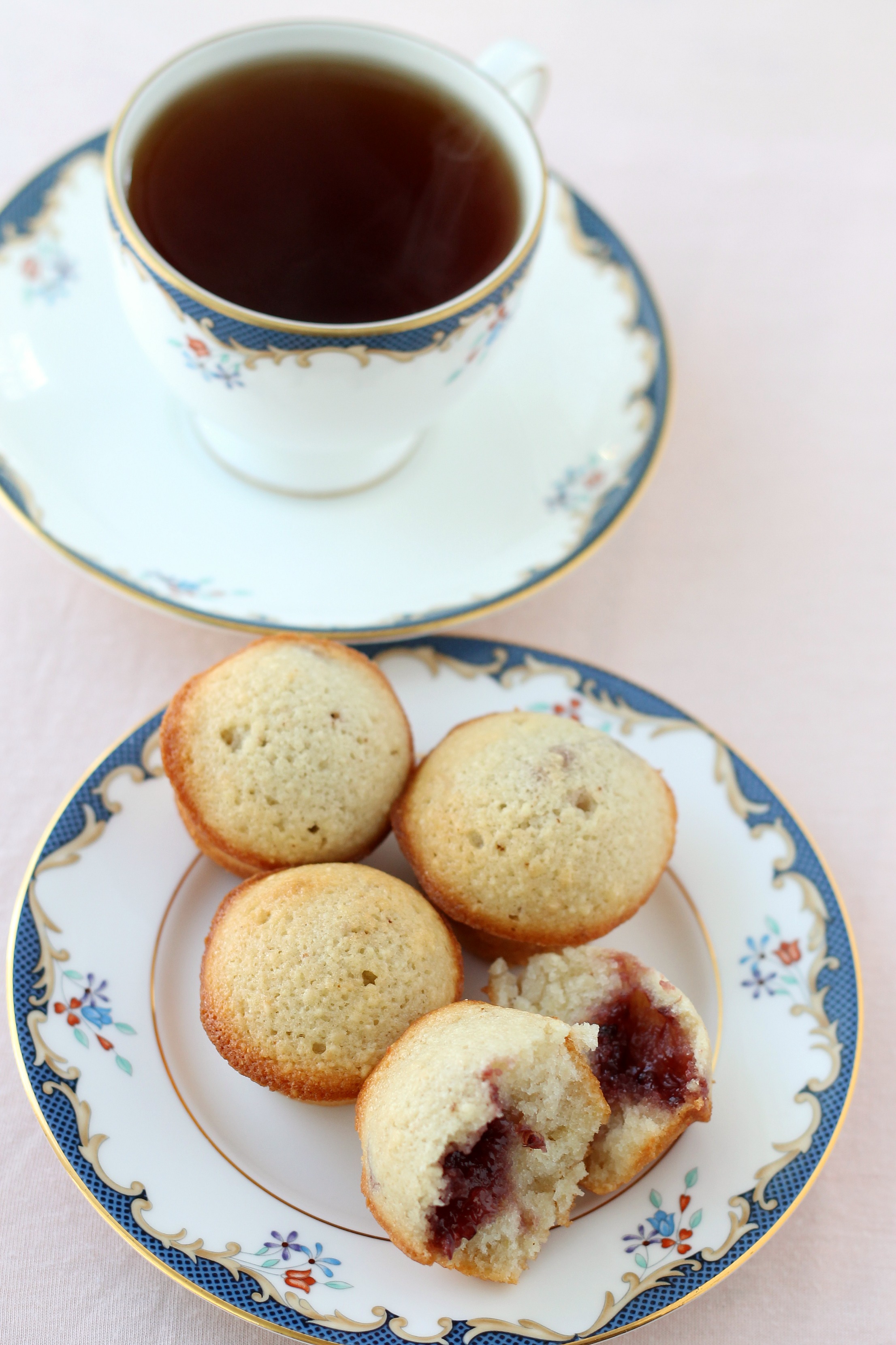 Say hello to a very elegant Valentine’s Day treat that is perfect for enjoying with a hot cup of tea. These popped out to us recently in our Martha Stewart’s Cupcakes book. The question is, why on earth did we wait several years to make these? They may possible win the prize for the most delicious dessert we have made recently! They are supposed to have a whole pitted cherry in the center, but in the middle of winter, when life doesn’t give you cherries, you don’t make cherry-filled cupcakes. So, we instead filled them with jam for a more year-round-friendly option and found the results great. Any type of jam would work, but we recommend some sort of berry, preferably cherry. The cake itself is tender with a lovely almond-flavored hint from almond flour. These would be fun to serve as a treat at a party with a scoop of vanilla ice cream, or just for eating plain while reading a book on a rainy day!